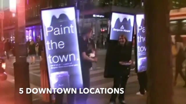 Benjamin Moore Paints wanted to make a bold statement during the Toronto International Film Festival because discerning festival goers are a perfect audience. But with the cost of an official sponsorship being prohibitive, instead, this creative "splashed" paint over transit shelters and streetcars along King Street to directly reach the TIFF attendees.